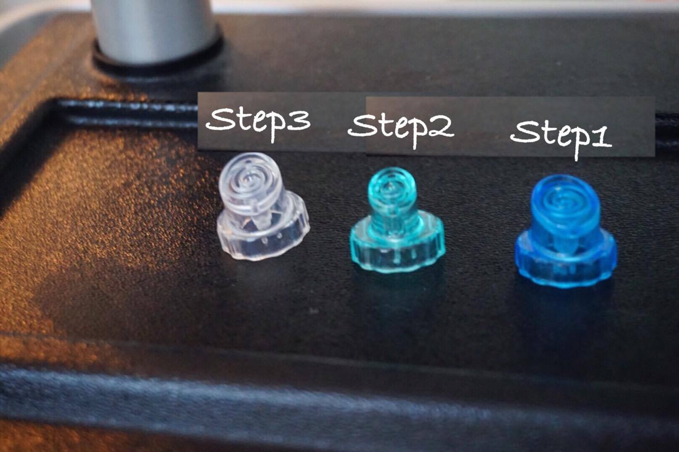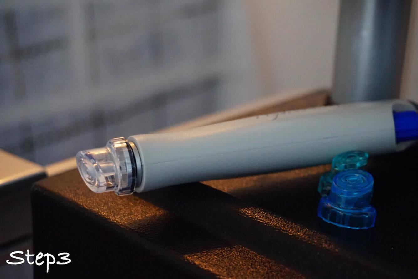 儀器有3個頭,藍色是全面清潔,綠色是較細的,