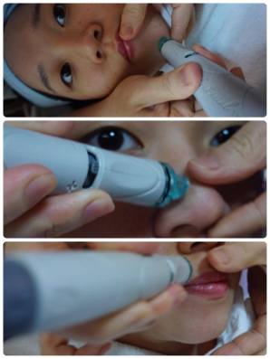 Step 2 用細微位頭,吸走鼻頭等細緻位的污穢。