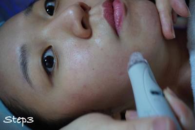 Step 1 會用大吸頭 ,吸走臉部和頸部的污穢(油脂、黑頭) 。