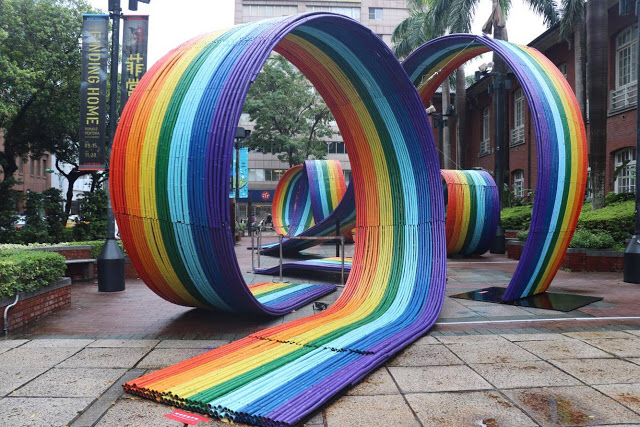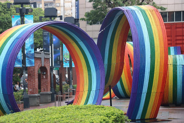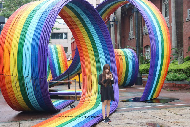 這條波浪彩虹就在當代藝術館門前,離台北車站不遠。