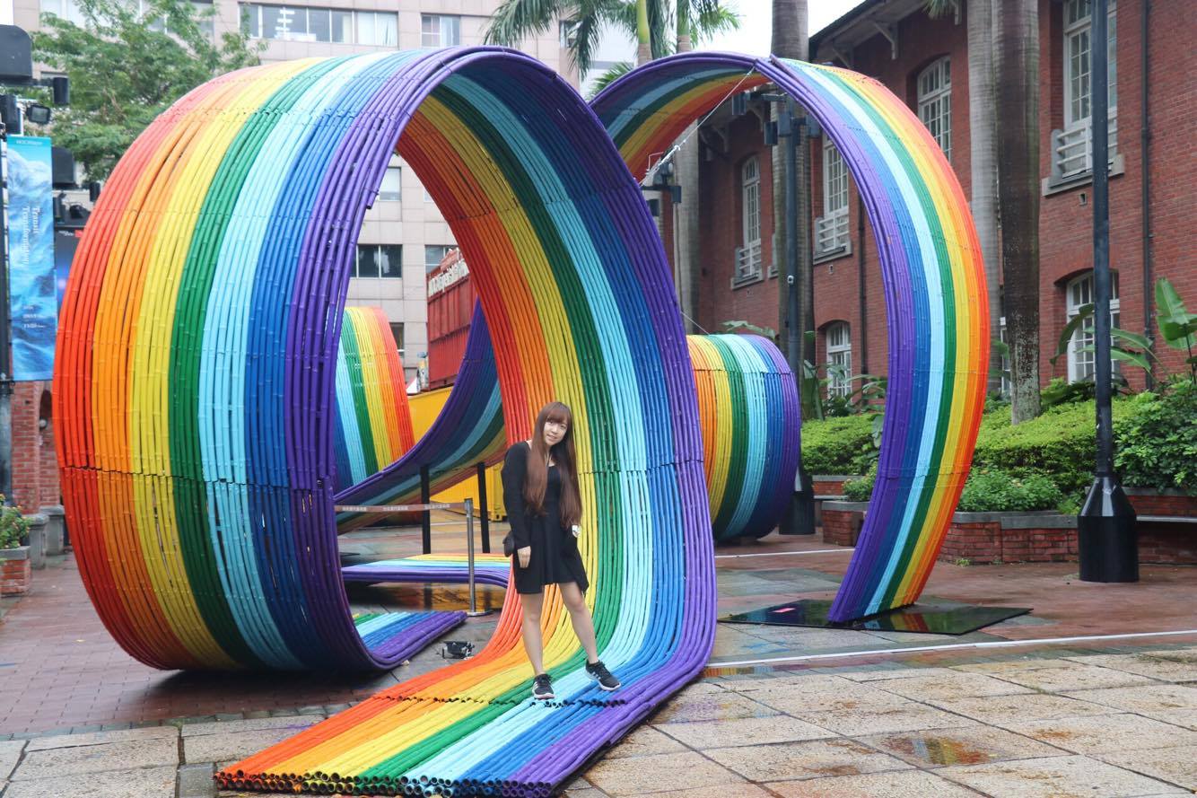 這條波浪彩虹就在當代藝術館門前,離台北車站不遠。