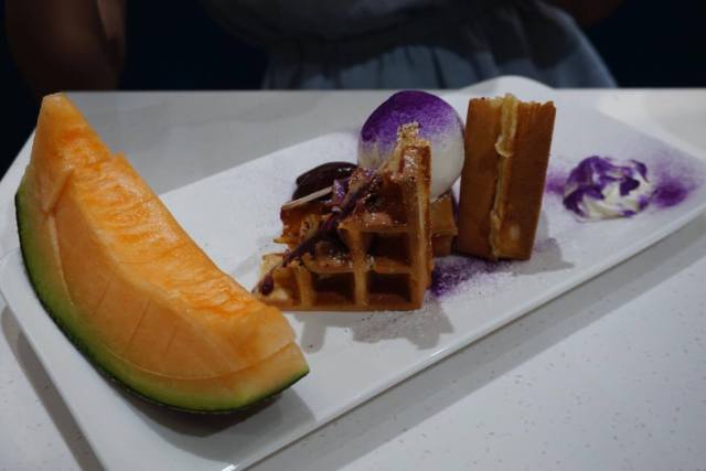 蜜瓜紫薯窩夫配豆腐雪糕,蜜瓜很新鮮,
