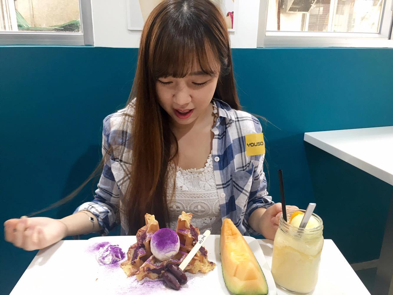 蜜瓜紫薯窩夫配豆腐雪糕,蜜瓜很新鮮,