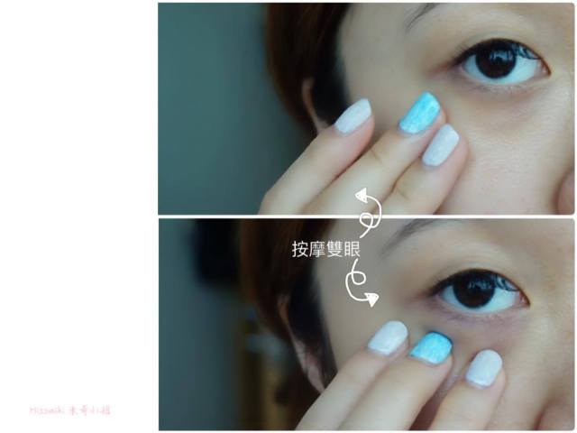 使用眼部黃金導航膠囊後配合指尖按摩後,