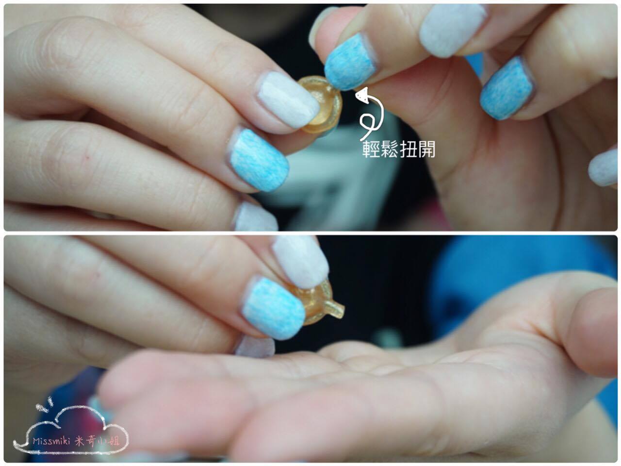 以旋轉方式輕輕扭開膠囊尖端位置,