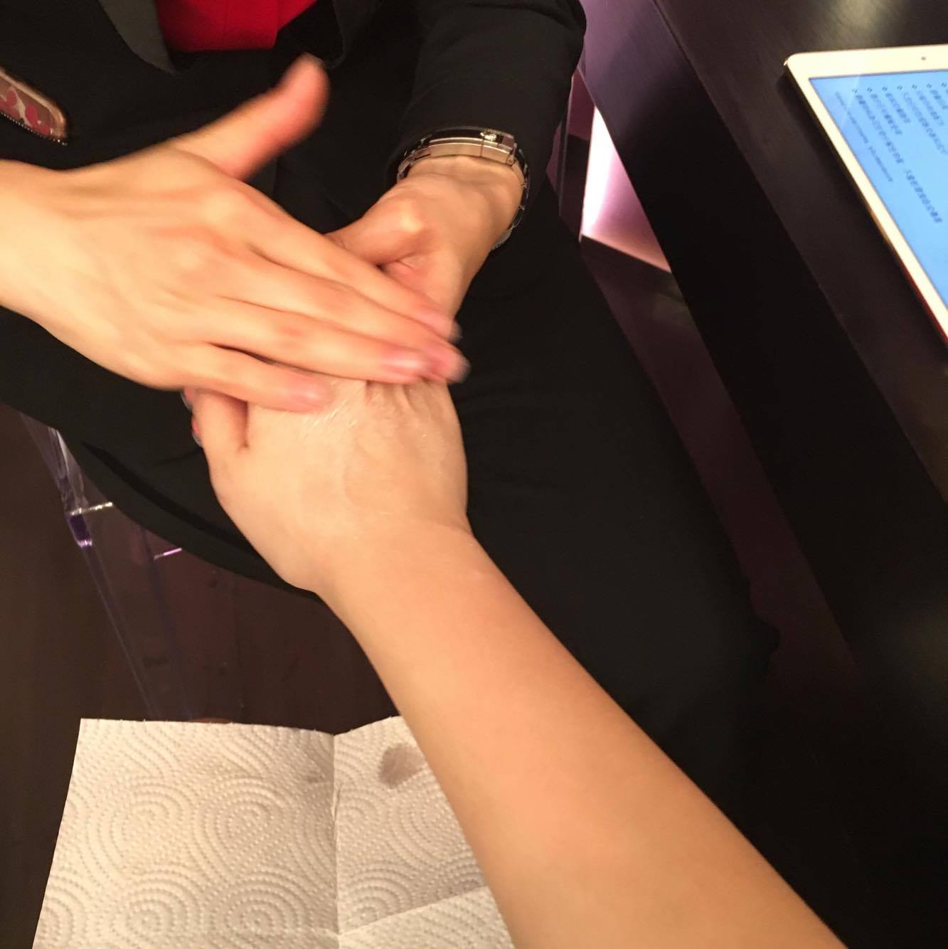 ▲美容師利用此款Elizabeth Arden 全新升級版黃金導航膠囊為我按摩雙手,