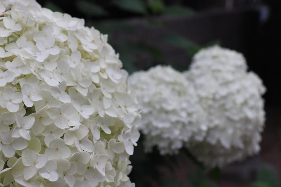 ▲很少見的白色繡球花,