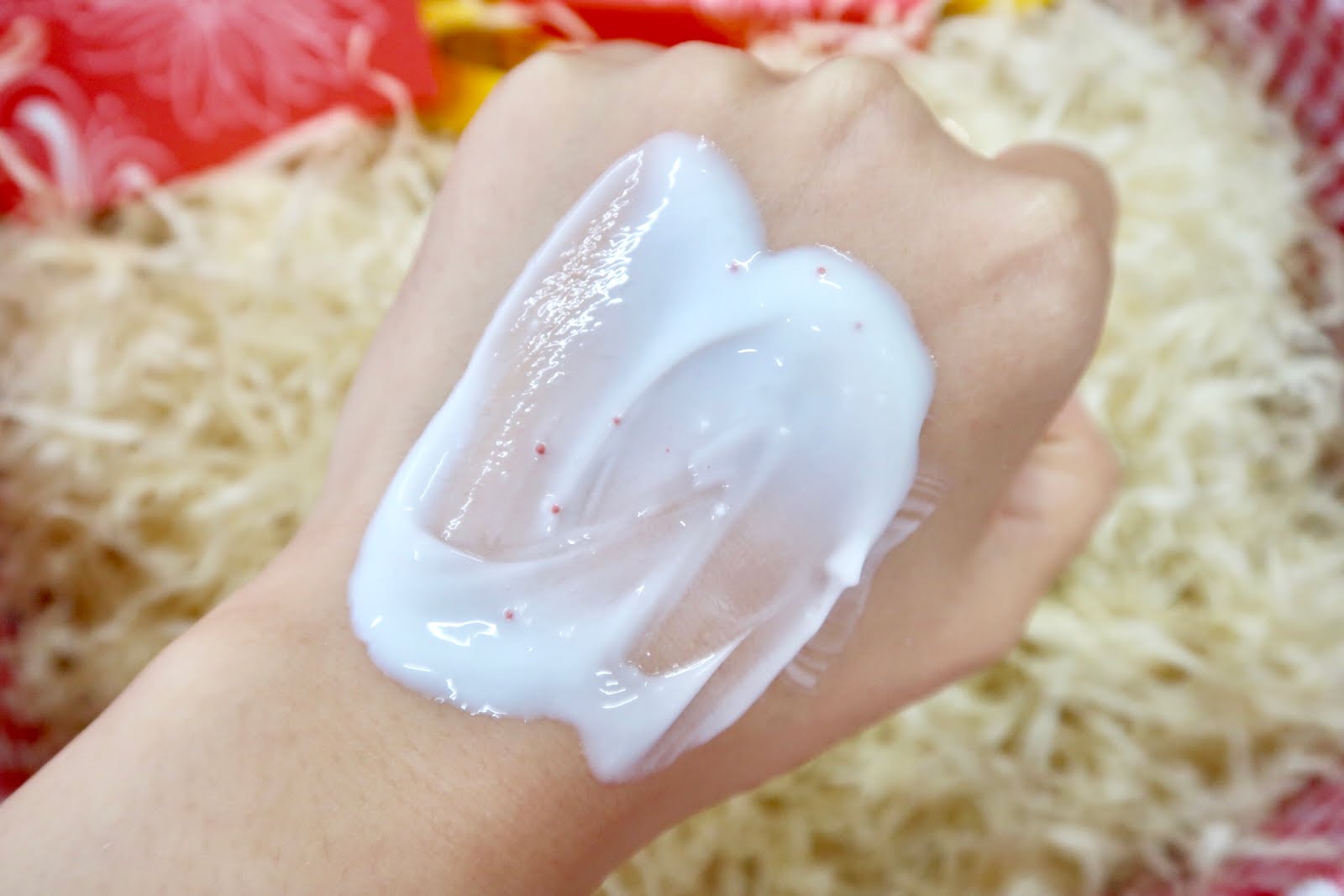 分別是山桑子亮白磨砂霜以及紅石榴煥采抗氧面膜。