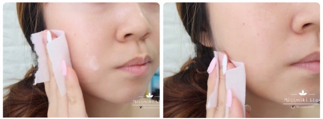 潔面後,取適量浸潤化妝棉,在面部敷上約5分鐘後取下。