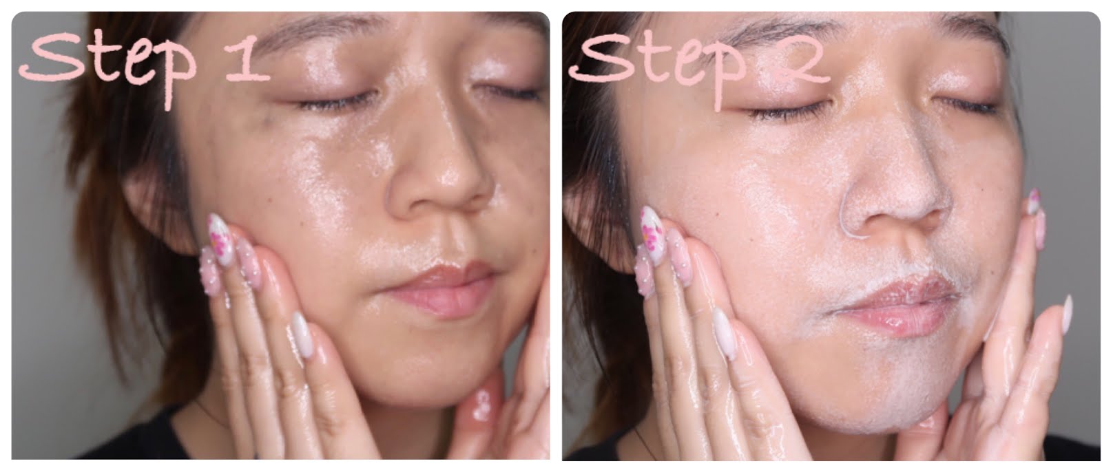 用卸妝油在面上按摩後(STEP 1),便可加入清水進行乳化步驟(STEP 2),