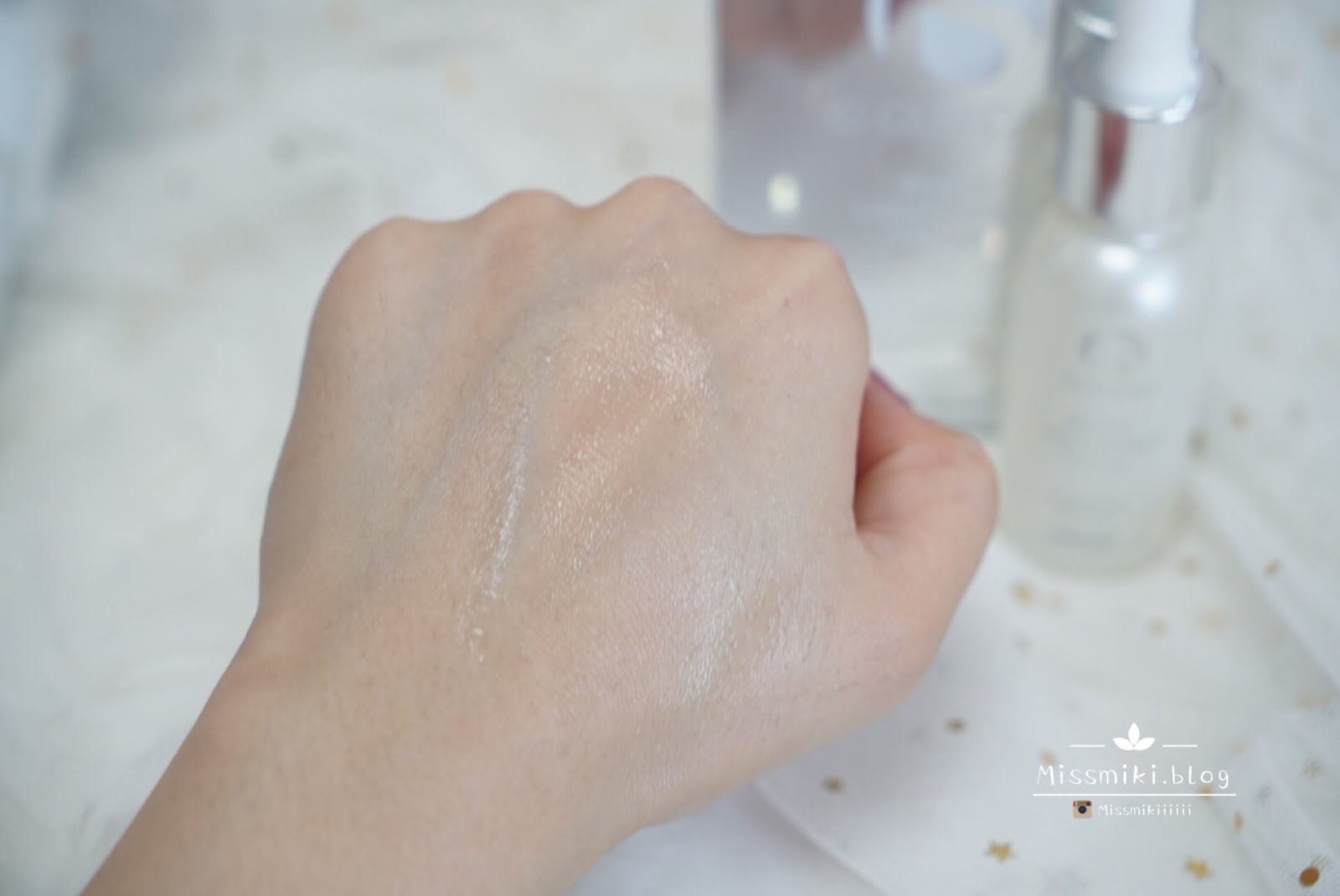 防曬液的質感滋潤,容易推開,