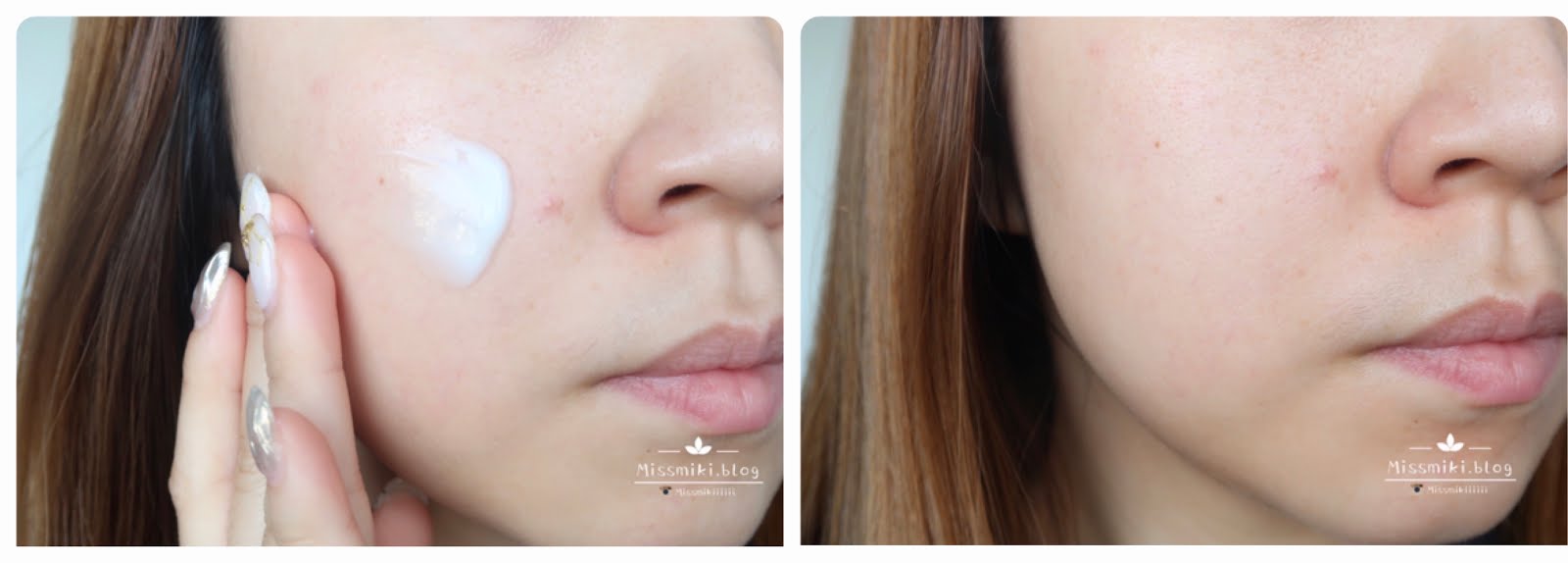 保濕霜的質感輕盈清爽,絕不黏膩,推開後瞬間被皮膚所吸收。