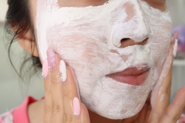 用清水沖洗面膜時,感覺到白泥中有幼滑的磨砂粒子,