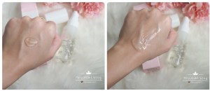 乳白色的精華液,質地水潤容易推開,很容易被肌膚吸收。